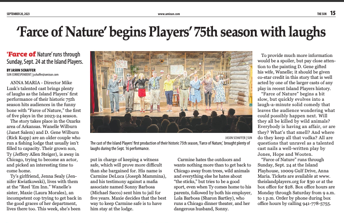 "Farce of Nature… evolves into a laugh-a-minute solid comedy."